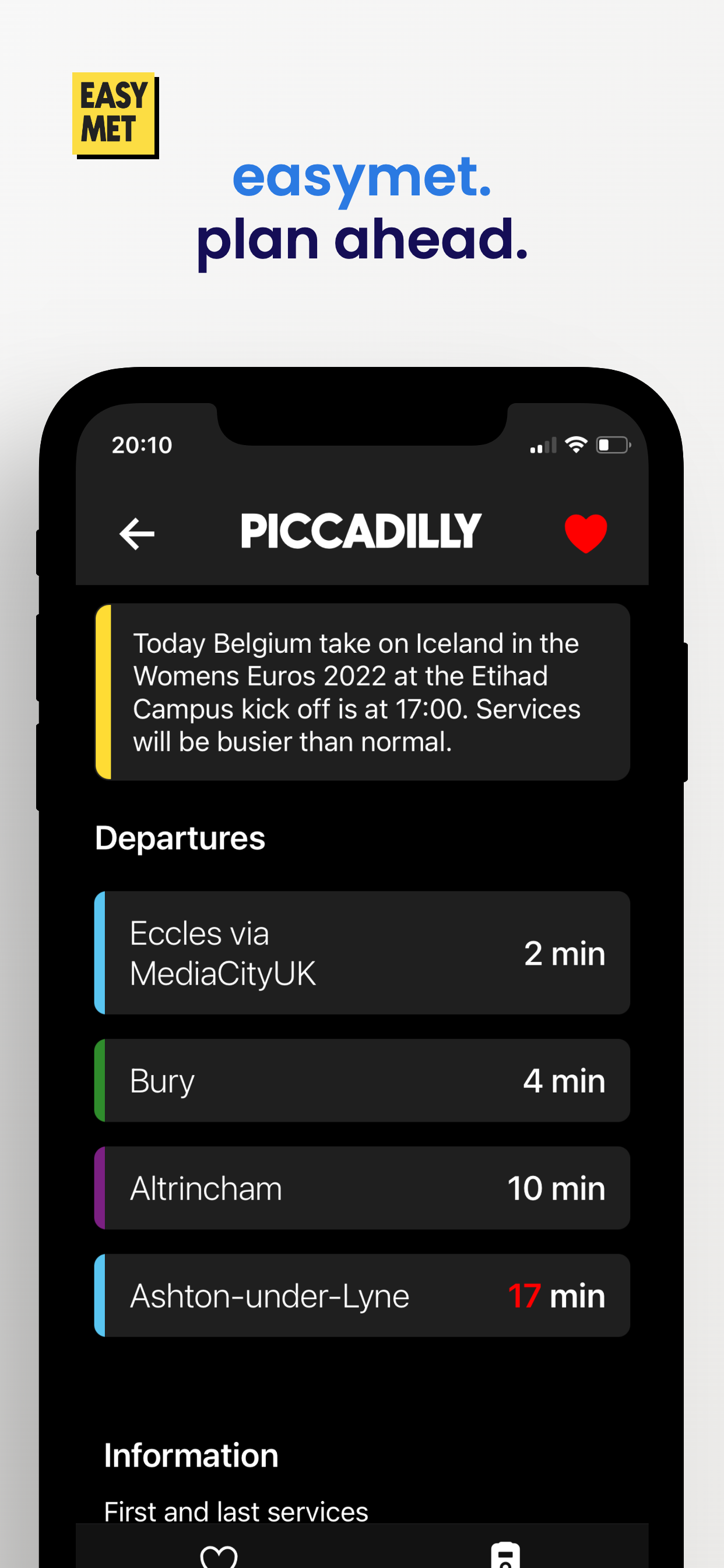 easymet is a Manchester Metrolink companion app for people looking to plan their day around departure times on the tram network.
